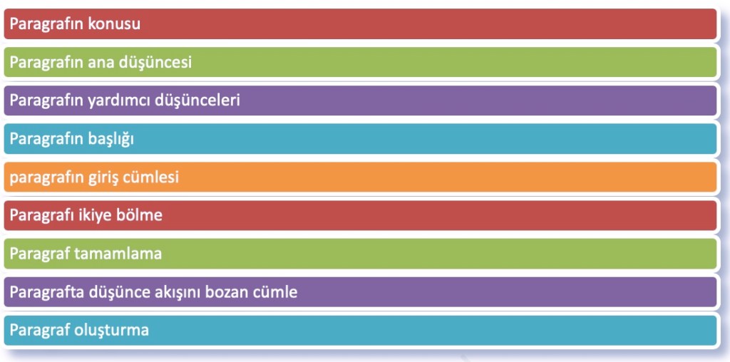 Şimdi paragraf konusunu üç ana bölüme ayırarak öğrenmeye başlayalım.